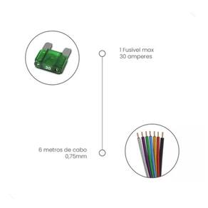 KIT DE INSTALAÇÃO SOM AUTOMOTIVO ACOMPANHA OS SEGUINTES ITENS - 1 METRO DE CABO 16MM PRETO - 6 METROS DE CABO 1,00mm - 6 METROS DE CABO 16MM VERMELHO - 10 METROS DE FIO PARALELO 2 x 1,50mm - 1 CABO RCA 5 METROS - 1 PORTA FUSIVEL MIDI - FUSÍVEL MAX 100 AMPERES