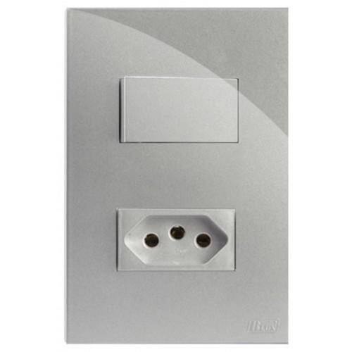 1 - cj interruptor simples + tomada 10a 4x2 - recta prata gloss - brg11248-8pr