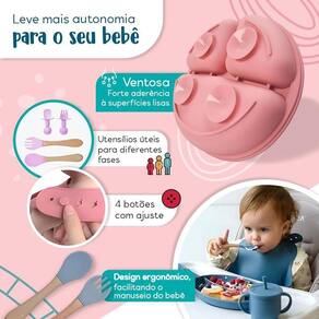 Este conjunto é perfeito para a introdução alimentar e auxilia na independência dos pequenos durante as refeições. Além disso, o material de silicone é livre de BPA, resistente a altas temperaturas e pode ser lavado na máquina de lavar louças.