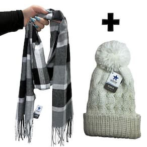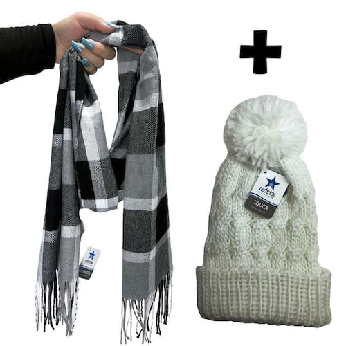 Kit inverno cachecol xadrez blogueira com touca pompom de frio delicada