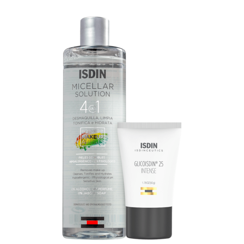 O Kit ISDIN #05 retira até mesmo maquiagens mais resistentes, em uma fórmula delicada e rica em propriedades calmantes. O gel conta com Ácido Glicólico e Aloe Vera, garantindo a suavização de linhas, melhora da hidratação e da luminosidade da pele. Sensação de frescor e tratamento potente.