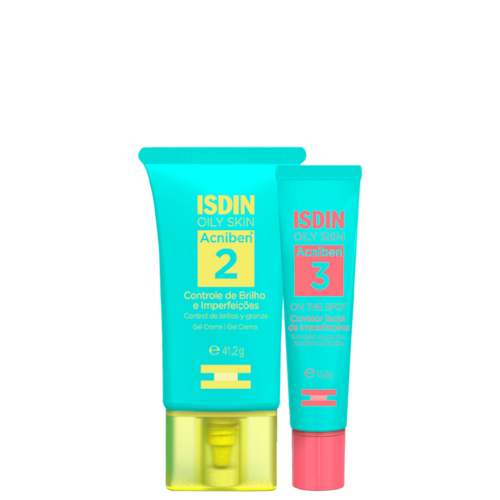 O Kit ISDIN Acniben Controle de Brilho & Antiacne conta com produtos para pele oleosa e acneica. O gel creme matifica e ajuda a reduzir as espinhas; e o gel secarivo ajuda a eliminar o tamanho e vermelhidão de espinhas faciais localizadas.