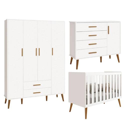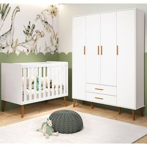 Funcional e encantadora, possui 4 gavetas com puxadores em madeira, 1 porta com prateleira interna, sistema antitombamento e amplo espaço para organizar as roupas do bebê.