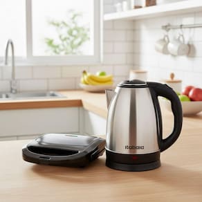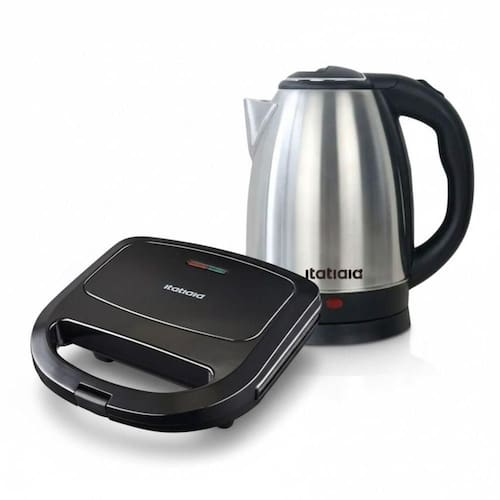 O Kit Itatiaia Essencial une dois eletrodomesticos essenciais para sua rotina: a Chaleira Eletrica 1,8 L e o Grill / Sanduicheira 750W. Com esse combo, voce prepara bebidas quentes com rapidez e ainda grelha sanduiches, carnes ou lanches de forma pratica e segura.