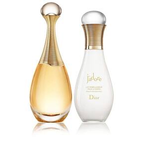 Kit com perfume feminino J'adore EDP (50ml) e loção corporal Dior (75ml). Uma celebração do poder e sofisticação da mulher moderna.