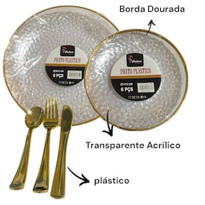 Design Elegante: A borda Prata combina beleza e requinte, tornando cada refeição uma experiência especial. Material Durável: Feitos em acrílico de alta qualidade, os pratos são resistentes, leves e perfeitos para uso interno e externo. Versatilidade: Ideal para servir saladas, entradas, pratos principais ou sobremesas em festas, celebrações e reuniões familiares. Fácil de Limpar: Podem ser lavados à mão, facilitando a limpeza após o uso.