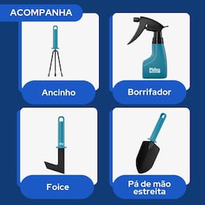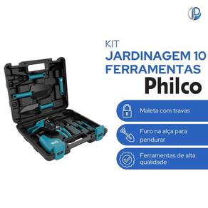 Com o Kit Jardinagem Philco PKJ10 o momento de cuidar das suas plantas e do seu jardim será mais fácil e prazeroso. Ele é composto por 10 ferramentas, perfeitas para diferentes atividades na hora de realizar a manutenção dos espaços. Acompanha maleta com travas para você guardar todos os acessórios, manter organizado e ter mais facilidade e segurança ao transportar e cuidar das suas plantinhas. As ferramentas do Kit Jardinagem são em aço e possuem cabo em plástico de alta resistência com furo na alça para pendurar, o que as torna mais leves, práticas e fáceis de serem manuseadas. O Kit Jardinagem Philco PKJ10 é ideal para quem ama jardinagem ou que deseja cuidar das suas plantas, hortas e temperos com as próprias mãos e com menos esforço físico. -acompanha 10 acessórios para atividades de jardinagem; -cabo dos acessórios em plástico de alta resistência; -acompanha maleta para armazenamento dos acessórios; -acessórios: 1 ; 1 mini rastel de 4 pontas; 1 Ancinho de 3 pontas; 1 mini pá larga; 1 mini pá estreita; 1 pá de mão estreita; 1 pá de mão larga; 1 tesoura para folhas; 1 tesoura para poda; borrifador de 170ml. -A , as pás de mão e o ancinho possuem furo na alça para pendurar. Medidas: 20cmX30cmX7cm, 1,35kg Marca: Não Informado