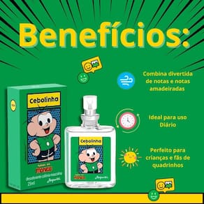 A colônia do personagem mais travesso dos quadrinhos chegou para trazer alegria, aventura e muita diversão ao seu dia! Com uma fragrância refrescante e leve, ela combina perfeitamente com crianças e fãs nostálgicos da Turma da Mônica.