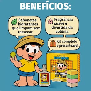 Ideal para quem busca produtos de qualidade com um toque lúdico, o kit oferece uma experiência completa, unindo a hidratação dos sabonetes em barra com a fragrância suave e marcante do desodorante colônia.