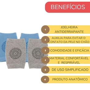 • Proteção Completa: As joelheiras antiderrapantes foram criadas para proteger os joelhos do seu bebê durante o engatinhar e os primeiros passos, evitando lesões e desconforto causados pelo contato direto com o chão.