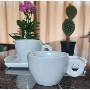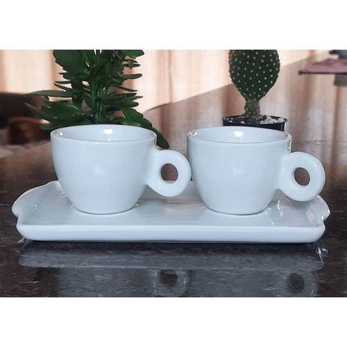 Kit Jogo 2 xícaras Café 100ml Cônica c/ Bandeja Refratária - Porcelana branca