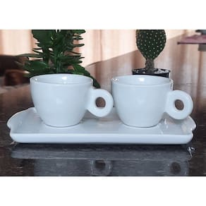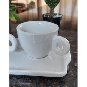 Kit Jogo 2 xícaras Café 80ml Cônica c/ Bandeja Refratária - Porcelana branca (2)