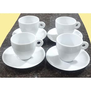 Kit Jogo 4 xícaras Café, Chá 150ml Cônica com pires - Porcelana branca