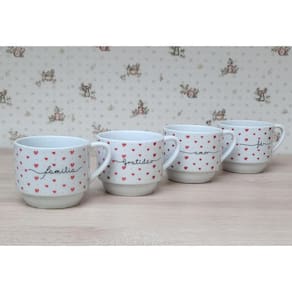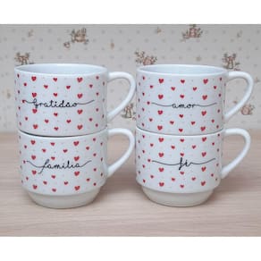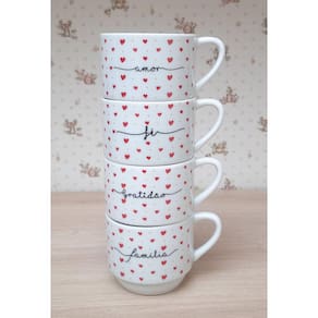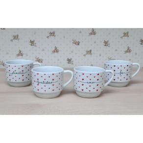 Kit Jogo 4 Xicaras Café Chá hotel 200ml Empilháveis - Poá coração frases