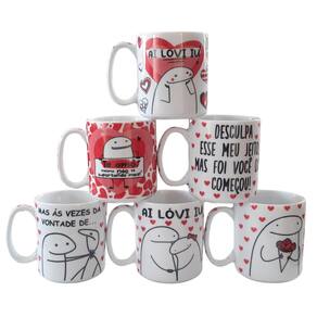 Kit Jogo 6 canecas Flork 300ml Frases Namorados - PorcelanaContém 6 canecas com design bem interessante, você pode presentear as pessoas que você gosta. Frases: -Ai Love You -Desculpa esse meu jeito, mas foi você que começou, Te amo -Te amo mesmo não te suportando mais -Eu Te Amo , mas as vezes dá vontade de... -Um mimo pra tú Forte resistente, pode ir ao micro-ondas. Ótimas para servir café com leite, água e bebidas em geral. Decalques com queima e fixação em alta temperatura, o que dá um brilho e charme há qualquer ambiente.OBS: Embalagem contem 6 unidades Marca: Antilope Decor Porcelanas