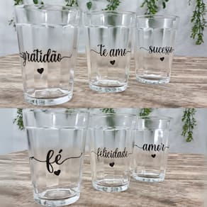 kit Jogo 6 copos Americanos Vidro180ml Frases Motivacionais Peças feitas de material de alta qualidade, resistentes e com alto brilho, e deixa qualquer ambiente mais bonito e moderno.O vidro tem uma enorme vantagem sobre outros materiais, pois é fácil de limpar e não absorve cheiro, o que deixa a peça e o ambiente livre de mal cheiro. Esse kit é super moderno e deixará sua mesa de servir muito charmosa. O material é vidro de alta qualidade São resistentes a lava-louças e micro-ondas. Os desenhos são decalque aplicados e queimados junto à peça, o que os funde a peça, dão brilho e não desbotam com o tempo.