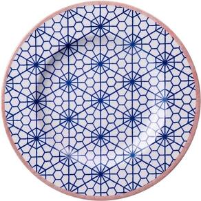 Uso: Resistente a micro-ondas, Resistente a lava-louças; Material: Porcelana; Formato: Redondo; Cores: Branco e Azul; Coleção: Abstratta; Recomendações de uso: