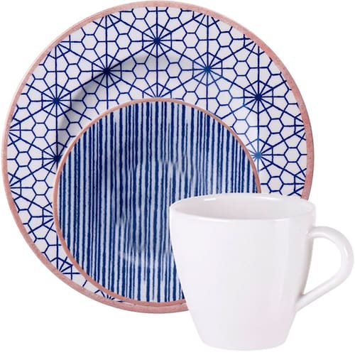 Kit 2 Xícara 200ml Com Pires 15cm De Diâmetro Abstratta;