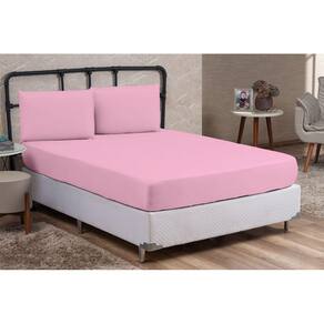 Kit jogo de cama casal linha gold percal 200 fios 04 peças cama box 100% algodão antialérgico rosa - contém: 01 - lençol percal 200 fios com elástico 1,90m compr x 1,40m larg x 30cm alt . 01 - lençol percal 200 fios sem elástico 2,50m compr x 2,00m larg . 02 - fronha com bainha percal 200 fios 70cm compr x 50cm larg .