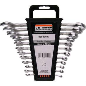 Jogo de chave combinada Starfer com 12 peças, indicada para aperto e desaperto de porcas, parafusos quadrados e sextavados.