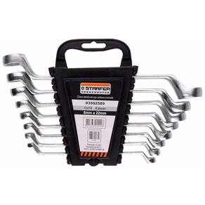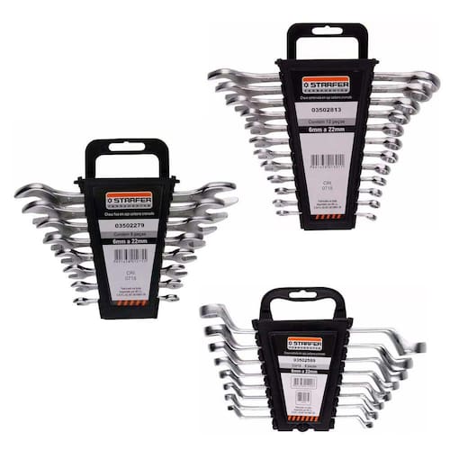 Jogo de chave combinada Starfer com 12 peças, indicada para aperto e desaperto de porcas, parafusos quadrados e sextavados.