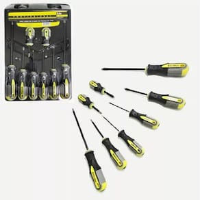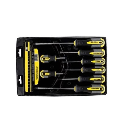 Kit Jogo Chave Fenda E Philips 8 Peças Imantada Profissional O kit de chaves de fendas e phillips EDA 8WU alem de possuir o sistema de imantada para facilitar a fixação dos parafusos na ponta da chave também tem seu cabo emborrachado, que Alem de confortável ele é ergonômico deixando assim o seu trabalho muito mais suave. O Jogo de chaves EDA é um parceiro Ideal para o trabalho e para aqueles serviços do dia a dia. -marca: EDA - Material: Cromo Vanádium com Cabos Emborrachados - Imã nas Pontas - 4 Chaves Phillips: PH2x38, PH0x75, PH1x75 e PH2x150 mm - 4 Chaves Fenda: 6x38, 3x75, 5x75 e 6x150 mm - Peso: 650 g
