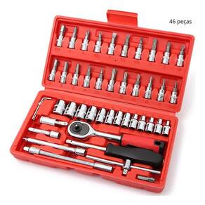 Kit Jogo Chaves Soquete Aço Catraca Com Maleta 46 Peças