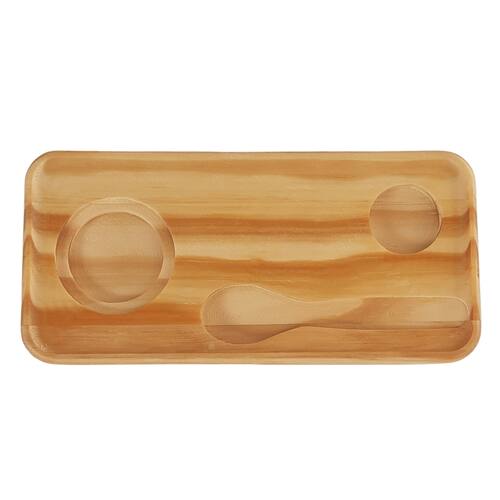 kit Jogo conjunto 4 Pires Retangulares p/ xícaras de café e chá - Pinus Nossos pires de Madeira pinus para xícaras de café/chá são simplesmente charmosos e muito práticos para organizar as xícaras ao servir um café Ótimo para te ajudar à desfrutar de momentos valorosos e porque não saborosos na companhia da familia e amigos. Perfeito para servir café em cafeterias, restaurantes, etc. Contêm espaço para colher, copinho de água com gás e para servir Petit fours e bolachas Acondiciona 6 xícaras de Café e Chá Medidas: (AxLxC) 1,5cm x 12cm x 25cm OBS:Por se tratar de madeira de Pinus natural, pode existir pequenas variações na tonalidade das cores da madeira. Embalagem contêm 4 peças Marca: Antilope Decor Porcelanas