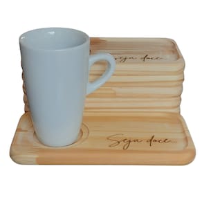 Nossos pires de Madeira pinus para xícaras de café/chá são simplesmente charmosos e muito práticos para organizar as xícaras ao servir um café