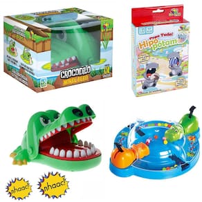 OBS: Esse anúncio se refere a um KIT de jogos, você receberá o Jogo Crocodilo Croc Croc Morde Dedo + Jogo Hipopótamo Papa Tudo.