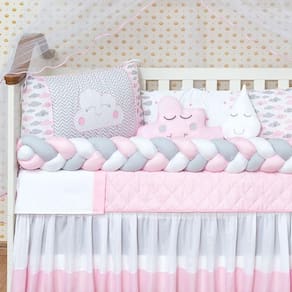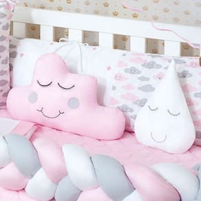 Kit de berço nuvem 12 peças O kit berço serve em berços padrão nacional e americano Possui zíper para retirar os enchimentos Contém na embalagem: 1 edredom 1,30 m x 0,75 cm 1 almofada nuvem 0,40 cm x 0,20 cm 1 cabeceira 0,57 cm x 0,37 cm 1 lateral 1,25 m x 0,25 cm 1 trança 1,25 m x 0,12 cm 1 lençol de cima 1,30 m x 0,90 cm 1 fronha 0,28 cm x 0,38 cm 1 bandô de mosqueteiro 1,40 m x 0,20 cm 1 mosqueteiro 4,50 m x 1,50 m 1 almofada de gota 1 saia box 1 lençol 1,20 m x 0,80 cm Composição: Tecido estampado: 100% algodão Tecido liso: 50% poliéster / 50% algodão Enchimento = 100% poliéster Mosquiteiro = 100% poliamida Marca: L2m Ean: 7774514556249