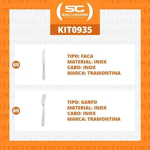 Cor: Prata | Tipo de Talher: Conjunto de Utensílios