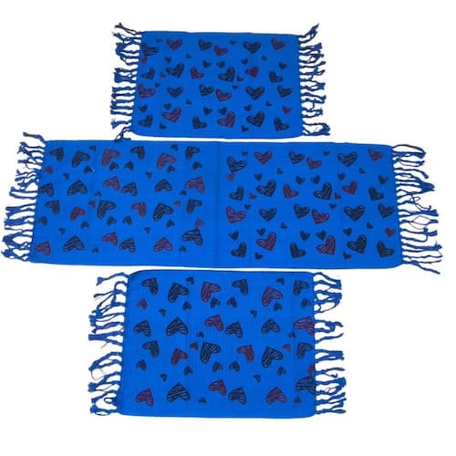 Kit Jogo De Passadeira Tapete De Cozinha Grande 3 Peças Estampado Com Nozinho Tecido Grosso Modelo Coração Colorido Azul