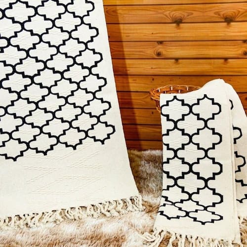 Kit Jogo De Passadeira Tapete De Cozinha Grande 3 Peças Estampado Com Nozinho Tecido Grosso Modelo Geométrico Cru