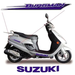 Itens Incls:2 Adesivos Suzuki - Adesivos sem resina brilho digital 2 Adesivos Burgman - Adesivos sem resina brilho digital 2 Adesivo Logo Suzuki Resinado