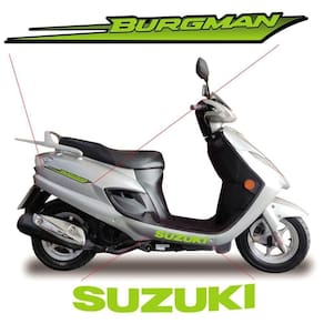 Itens Incls:2 Adesivos Suzuki - Adesivos sem resina brilho digital 2 Adesivos Burgman - Adesivos sem resina brilho digital 2 Adesivo Logo Suzuki Resinado