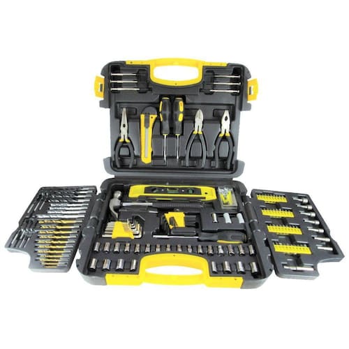 - 6 Chaves de precisão - 1 Alicate meia cana - 1 Alicate bico curto - 1 Alicate Comum - 1 Chave de Fenda 5x75mm - 1 Chave Philips 5x75mm - 1 Estilete com Lâmina - 48 Bits - 11 Brocas Aço Rápido - 4 Brocas de videa - 10 Brocas escariadora - 1 Broca escariadora com Plug - 1 Nível - 1 Martelo - 1 Pulsão - 1 Chave canhão - 2 jogos de chave allen com 12 peças cada uma - 27 Boquinhas sextavada - Maleta