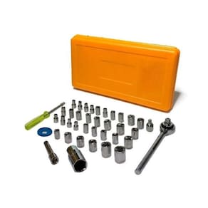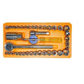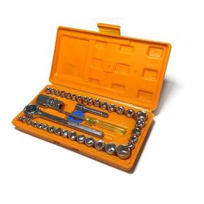 O kit de chaves soquetes com catraca reversível tem 40 peças para usar em diversos segmentos, é produzido em aço e tem cabo resistente com ótimo acabamento em malha trançada.
