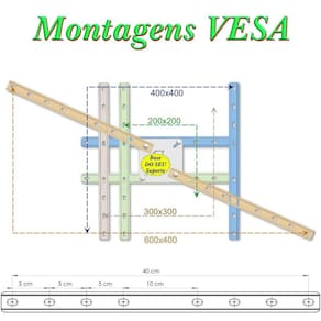 Vesa = medida da furação do gabinete da tv para fixação no suporte Vesa 400x400 = 40 x 40 cm