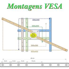 Vesa = medida da furação do gabinete da tv para fixação no suporte Vesa 400x400 = 40 x 40 cm
