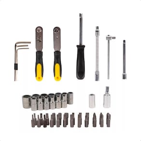 Este conjunto inclui 13 soquetes de 1/4 de 4mm a 14mm , 3 chaves sextavadas essenciais e ferramentas indispensáveis como chave catraca, adaptadores, barras de extensão e junta universal. Todos os itens vêm organizados em uma prática maleta, garantindo mobilidade e praticidade.