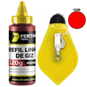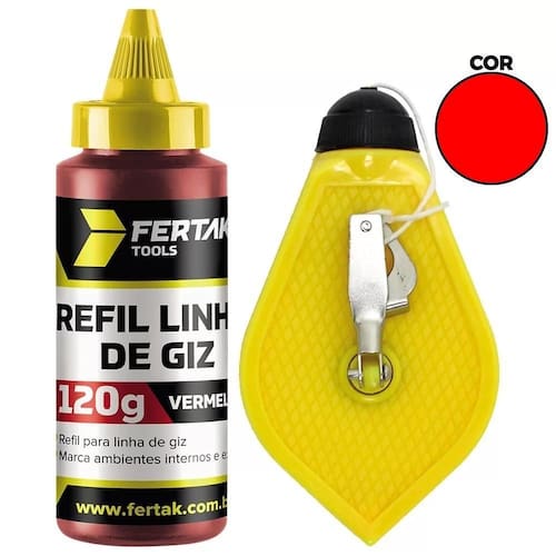 o jogo linha de giz com refil e nível fertak tools é a escolha certa para os profissionais de construção civil que buscam um marcador eficiente e simples de usar, pode ser utilizado também por marceneiros, carpinteiros, instaladores em geral e prestadores de serviço. Uma verdadeira evolução da marcação profissional, possibilitando a marcação de linhas retas em qualquer direção com muita praticidade, economia e limpeza, substitui o prego e o barbante. O combo oferece uma ótima relação custo x benefício, já que contém o giz de linha e o refil. Aplicação