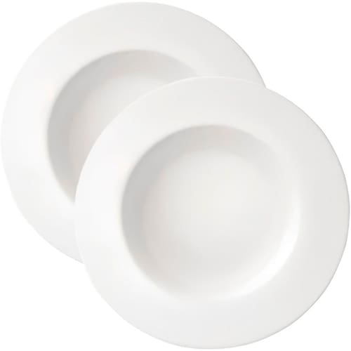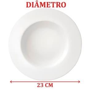 Kit 10 Pratos Fundo Aba Larga Branco Com 23cm De Diâmetro;