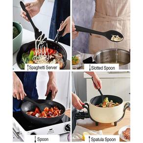 - Não danifica suas panelas e trazem total beleza para sua cozinha, O cabo é bem rígido para ter segurança e praticidade no manuseio e preparo de receitas. - Suportam altas temperaturas até 230C. Praticidade no uso e facilidade na limpeza.