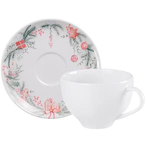 Kit 4 Xícaras 250ml Com Pires 15cm De Diâmetro Noite Feliz;