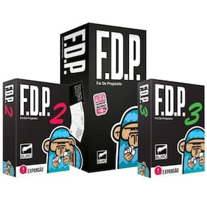Kit jogos foi de propósito + expansão fdp 2 + fdp 3 buró Sobre fdp foi de propósito:Desperte a 5º série dentro de você se você era um projetinho de fdp : Responda a pergunta da carta preta com uma de suas cartas brancas. Simples assim você pode ser zoeiro, caotiqueiro, sutil, irônico, meter o louco ou o que achar melhor. A gente não se importa, o importante é ser engraçado Atenção: se este tipo de humor te incomoda ou não te faz bem, então faça textão no facebook, xingue muito no twitter e dê um escândalo. Mas depois compre o jogo, não seja um vacilãoNão nos responsabilizamos pelo estado mental e nem pelas ações cometidaspelos individuos que não sabem interpretar a intenção dos textos nesta caixa que obviamente é vender mais jogos . Contém na embalagem:442 cartas.Manual de regras.Mau gosto. Sobre expansão fdp 2:Expansão com 50 novas cartas para o conjunto básico de fdp. São 40 novas cartas brancas com respostas e 10 novas cartas pretas com perguntas que podem e devem ser misturadas com as cartas do conjunto básico de fdp. Sobre expansão fdp 3:Complete a frase: um é pouco, dois é bom, três é .Fdp 3 é uma expansão com 50 novas cartas para o conjunto básico de fdp. São 40 novas cartas brancas com respostas e 10 novas cartas pretas com perguntas que podem e devem ser misturadas com as cartas do conjunto básico de fdp. Ficha técnica:Idade: 18+;Jogadores: 4 a 12;Duração: 30 a 90 minutos;Mecânicas: perguntas e respostas;Categoria: jogos adulto; jogo festivo; humor acido;Idioma: português br;Material: Jogo de CartasModelo: Foi de Propósito