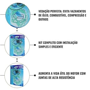 Produzido com juntas de aço multicamada e fibras sintéticas, o kit oferece vedação perfeita em todas as conexões do motor, impedindo que gases, óleo, combustível ou líquidos de refrigeração escapem.