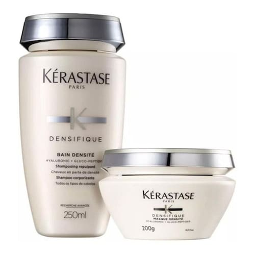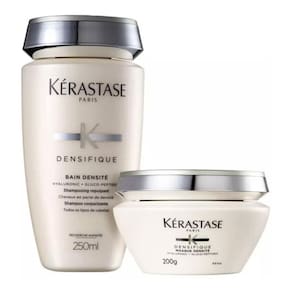 VOLUME E DENSIDADEBain DensitéDensifiqueShampoo para engrossar o cabelo, desenvolvido para trazer de volta a abundância, exuberância e elasticidade ao cabelo com perda de densidade. Um cabelo mais denso e cheio é revelado. VOLUME E DENSIDADEMasque DensitéDensifiqueMáscara capilar para queda de cabelos normais a espessos. Sua fórmula proporciona textura, massa e elasticidade para cabelos mais espessos, da raiz até as pontas.