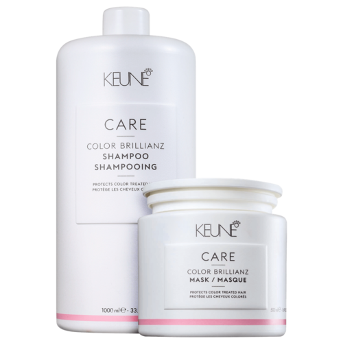 Kit com shampoo e máscara para cabelos coloridos. Keune Color Brillianz Intense Duo Salon mantém a cor vibrante e protegida por mais tempo.