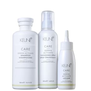 Kit Keune Derma Activate Trio conta com um novo complexo de minerais essenciais que aumentam a queratinização do cabelo durante o desenvolvimento para evitar a perda a partir da raiz, além de estimular a circulação sanguínea no bulbo capilar para o nascimento de novos fios com mais densidade e volume.